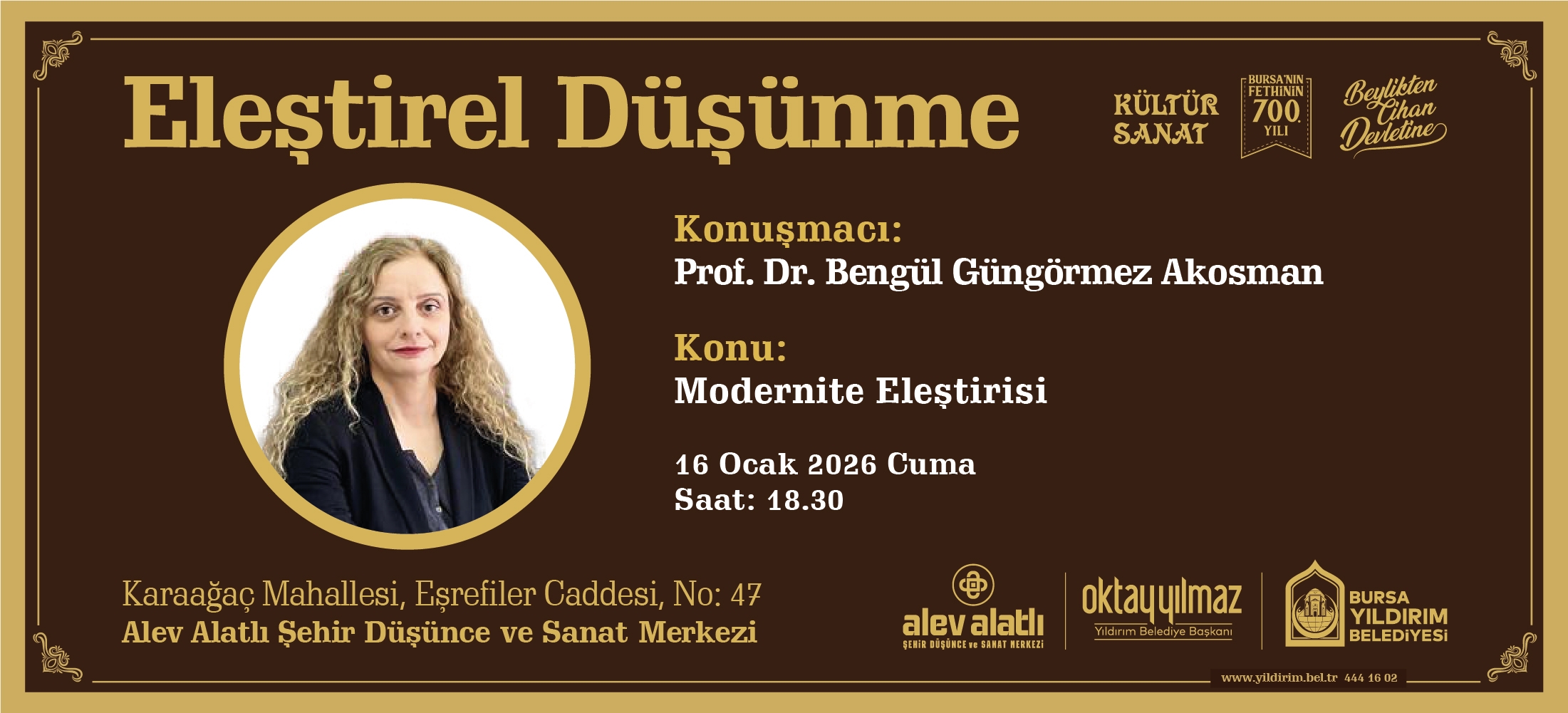 Eleştirel Düşünme Söyleşileri kapsamında gerçekleştirilecek bu programda, Prof. Dr. Bengül Güngörmez Akosman, modernite kavramını tarihsel ve düşünsel boyutlarıyla ele alacaktır. Söyleşide, modern düşüncenin birey ve toplum üzerindeki etkileri değerlendirilecektir.