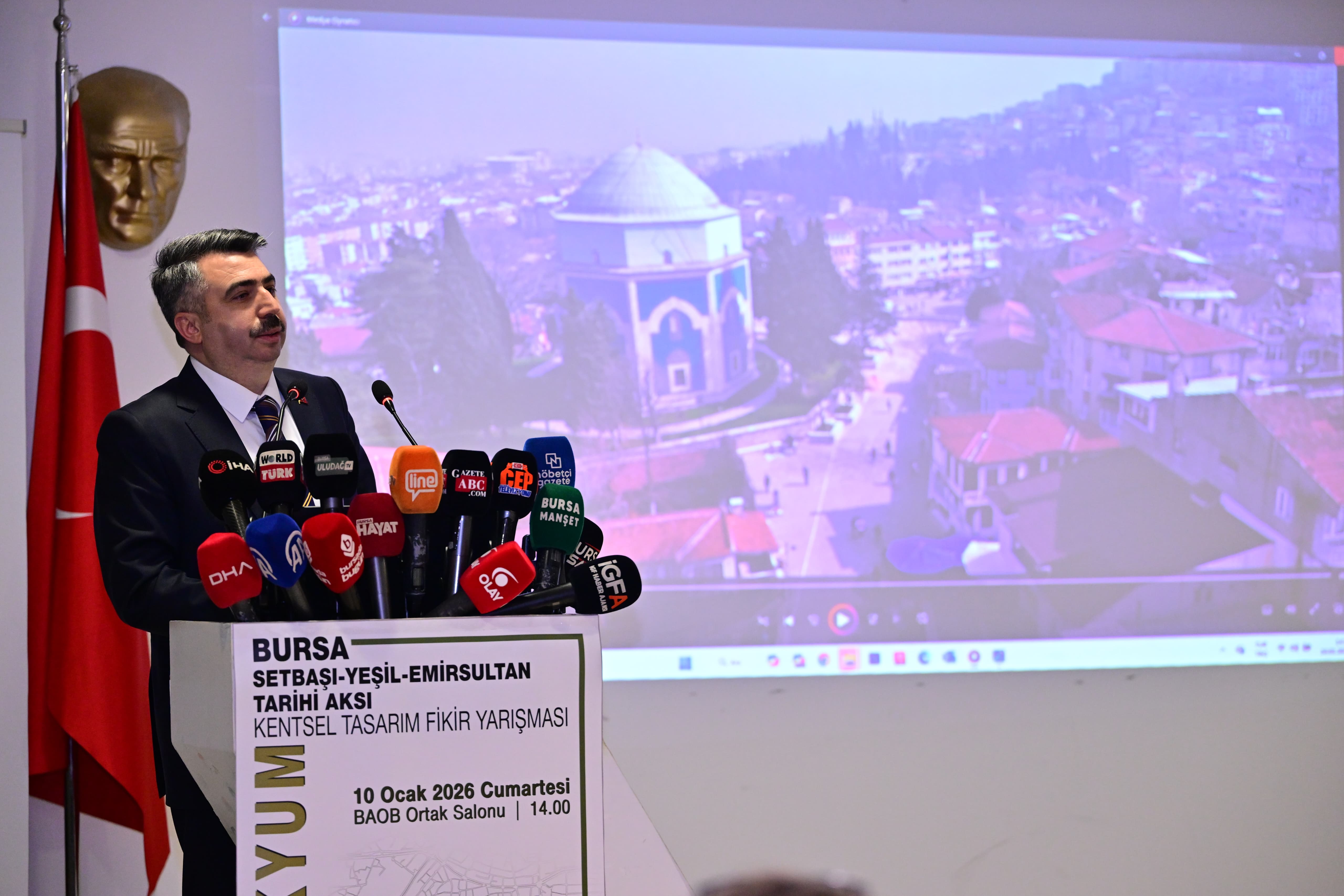 Yarışma sürecinin de yine ortak akıl ve dayanışma ile gerçekleştirildiğini belirten Başkan Yılmaz; “Yarışma sürecini yönetirken, güçlü bir jüri ve danışma kurulu kadrosuyla hareket ettik. Yarışma sonucunda da gördük ki, Bursa’ya olan ilgi gerçekten çok büyük. Geniş bir alanı kapsamasına rağmen tam 42 farklı kentsel tasarım projesi yarışmaya sunuldu. Alın terini ortaya koyarak fikir ve projelerini bizimle paylaşan tüm ekiplere yürekten teşekkür ediyorum. Bu yarışma bir uygulama yarışması değil, bir vizyon ve yaklaşım arayışıdır. Buradan elde ettiğimiz birikim; Bakanlığımız ile istişare edeceğimiz, hemşehrilerimizle yeniden konuşacağımız bir sürecin başlangıcıdır. Nitekim Hanlar Bölgesi’nde olduğu gibi, bu aksında Bakanlığımızın destek ve himayelerinde hayata geçeceğine inancımız tamdır. Bursa’nın fethinin 700’üncü yılında; kadim kimliğimizi daha güçlü bir şekilde öne çıkaracak, Yeşil- Emirsultan aksında manevi iklimi daha da güçlendirecek bu sürecin şehrimize hayırlı olmasını diliyorum” ifadelerini kullandı.