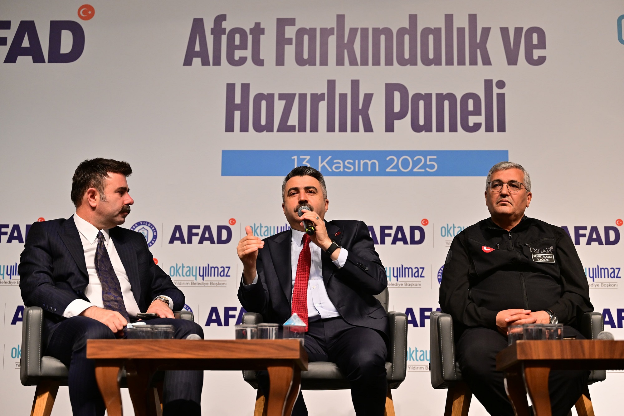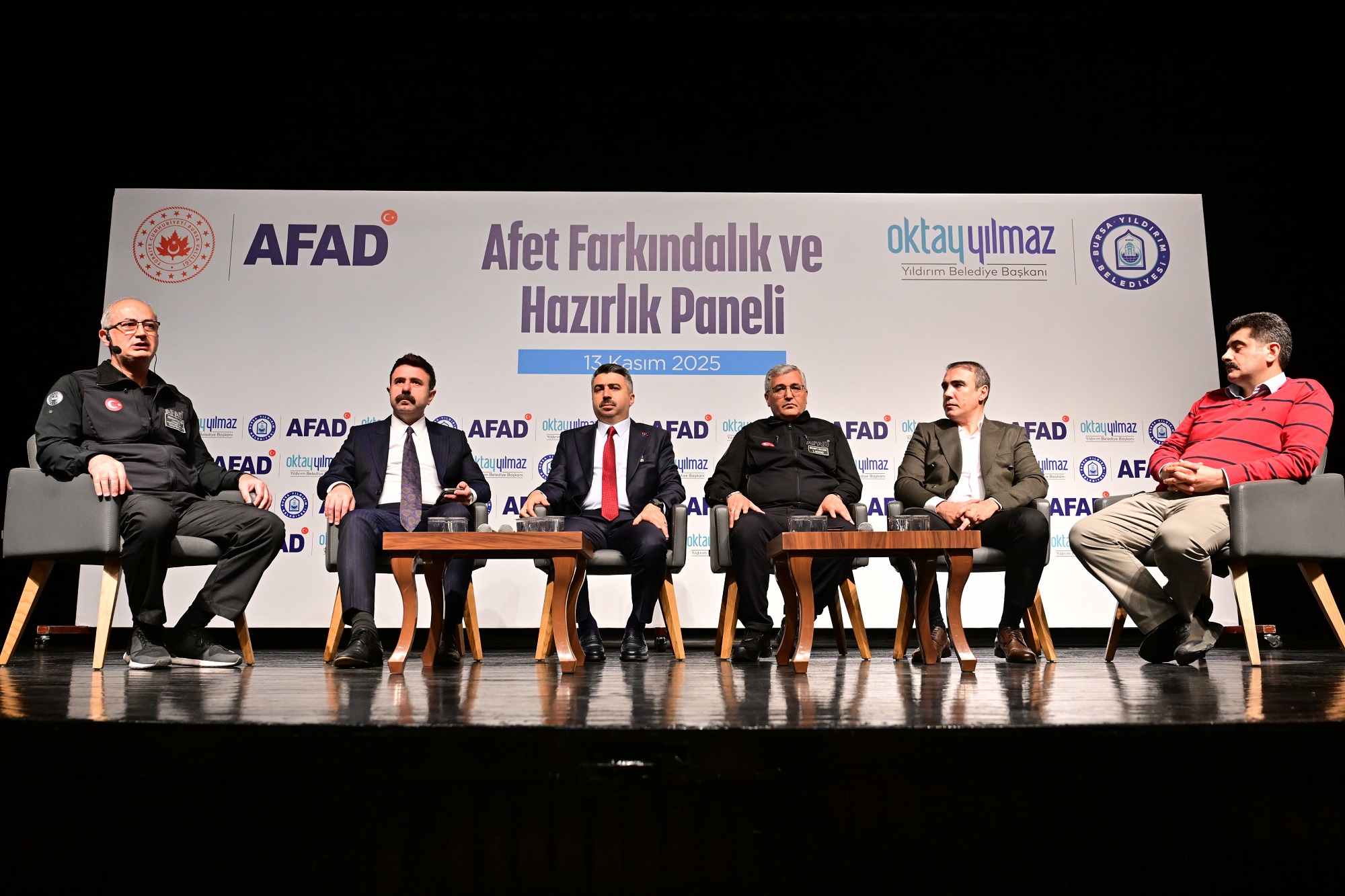Yıldırım’ı, afetlere karşı dirençli ve güvenli hale getirmek için; kentsel dönüşümden, farkındalık eğitimlerine kadar geniş bir alanda çalışmalarını sürdüren Yıldırım Belediyesi, AFAD iş birliğiyle, toplumda afet bilincini artırmak, yerel ölçekte yürütülen afet yönetimi çalışmalarını paylaşmak ve kurumlar arası iş birliğini güçlendirmek amacıyla, Barış Manço Kültür Merkezi’nde düzenlenen panele; Yıldırım Belediye Başkanı Oktay Yılmaz’ın yanı sıra; Vali Yardımcısı Salih Altun, Yıldırım Kaymakamı Metin Esen, AFAD Marmara Afet Risklerini Azaltma Daire Başkanı Gökhan Yılmaz, AFAD İl Müdürü Mehmet Buldan, Bursa Teknik Üniversitesi Öğretim Üyesi Prof. Dr. Eyüphan Avcı, Uludağ Üniversitesi Öğretim Üyesi Doç. Dr. Fatih Gürses, Orhangazi Belediye Başkanı Bekir Aydın, AK Parti Yıldırım İlçe Başkanı İrfan Akkaya, akademisyenler, muhtarlar, arama kurtarma ekiplerinin temsilcileri, STK’lar, AFAD gönüllüleri ve vatandaşlar katıldı.