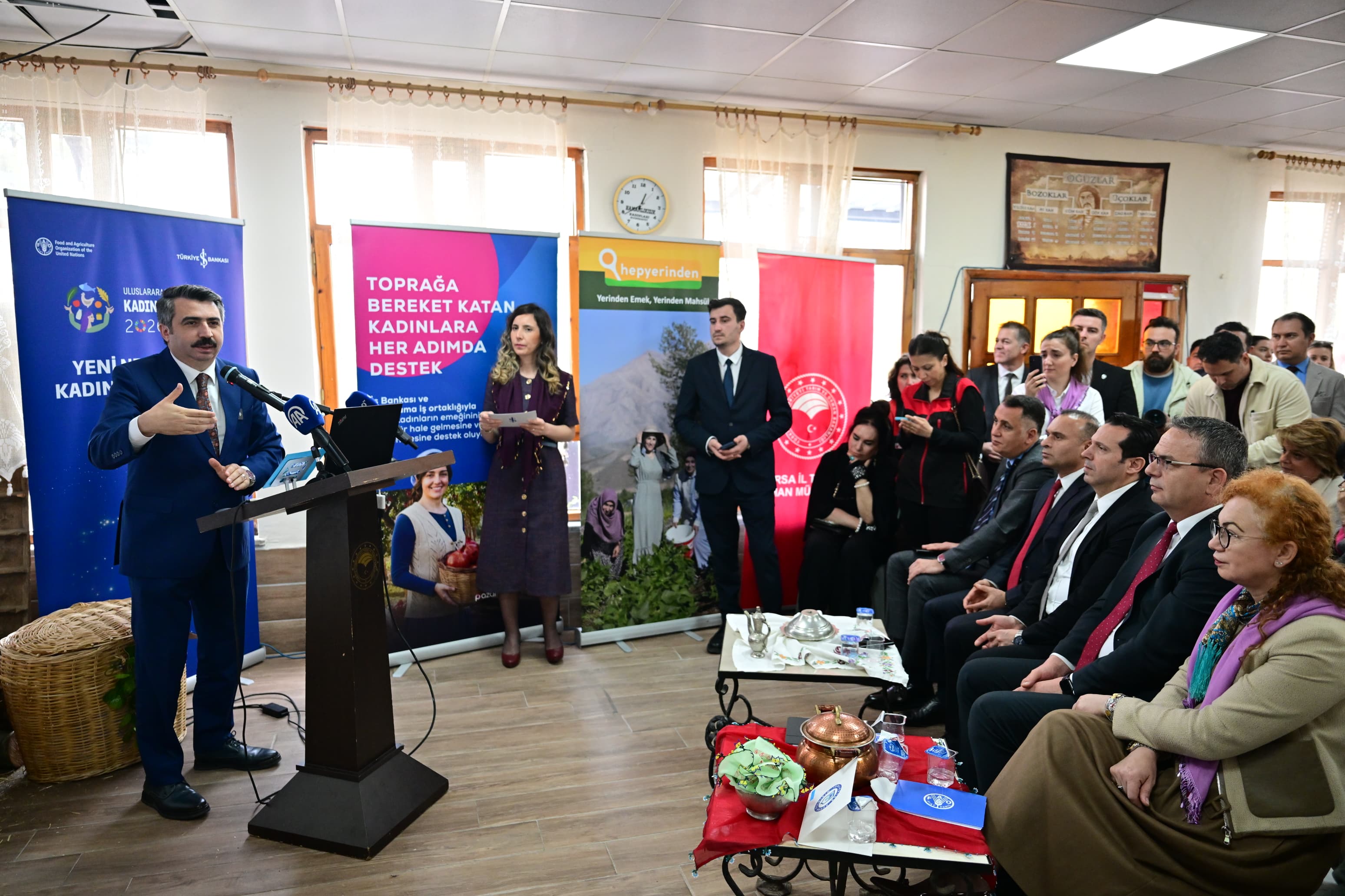 Kadınları üretime dahil etmek ve ekonomik özgürlüklerini kazanmalarına katkı sunmak için önemli projeleri hayata geçiren Yıldırım Belediyesi; Birleşmiş Milletler Gıda ve Tarım Örgütü (FAO) ve Türkiye İş Bankası iş birliği ile kadın kooperatiflerinin kapasitesini güçlendirmek için düzenlenen ‘Yeni Nesil Çiftçi Kadın Buluşmaları’ etkinliğine ev sahipliği yaptı. Hamamlıkızık Kadınları Kadın Girişimi Üretim ve İşletme Kooperatifi’nde düzenlenen etkinliğe ev sahibi Yıldırım Belediye Başkanı Oktay Yılmaz’ın yanı sıra; Bursa İl Tarım ve Orman Müdürü İbrahim Acar, Türkiye İş Bankası Genel Müdür Yardımcısı Sezgin Yılmaz, FAO Türkiye Temsilci Yardımcısı Dr. Ayşegül Selışık, Ticaret İl Müdürü İsmail Aslanlar, kadın girişimciler ve davetliler katıldı. Programda; kadın üreticilerin dijital pazarlara erişimini artırmak ve kırsal kalkınmayı desteklemek amacıyla; finansal, tarımsal, dijital ve ekolojik okur yazarlık, ürün geliştirme, markalaşma, pazarlama, gıda güvenliği ve dijital iletişim gibi konularda eğitimler verildi.