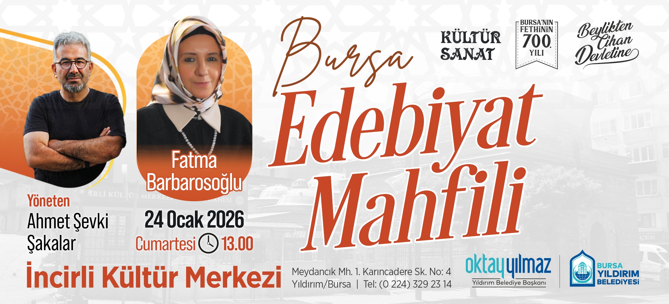 Yıldırım Belediyesi, ‘Beylikten Cihan Devleti’ne’ temasıyla başlattığı 2025-2026 Kültür Sanat Sezonu’nda, Bursa’nın fethini; tarihi, kültürel ve felsefi açıdan ele almaya devam ...