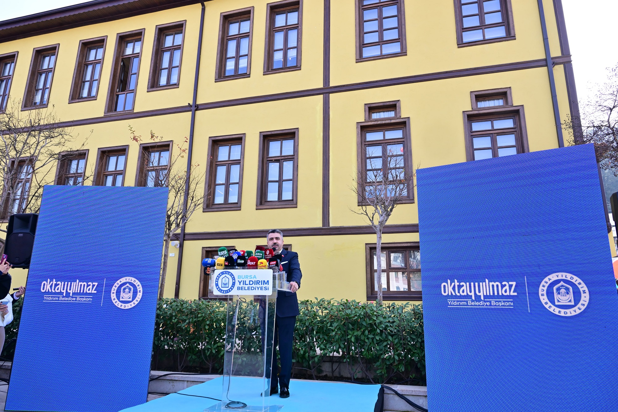 Bursa’nın kültür, sanat ve fikir hayatına yön verecek Alev Alatlı Şehir Düşünce ve Sanat Merkezi’nin açılışında konuşan Yıldırım Belediye Başkanı Oktay Yılmaz; “Bugün Bursa’mız; tarih, kültür, sanat ve düşüncenin aynı çatı altında yeniden hayat bulduğu çok müstesna bir ana şahitlik ediyor. Şehrimizin kültürel hafızasını canlı tutacak, fikir üretimini teşvik edecek, gelecek nesillere ilham verecek Alev Alatlı Şehir, Düşünce ve Sanat Merkezi’nin açılışında sizlerle birlikte olmaktan büyük bir bahtiyarlık duyuyorum. Yıldırım Belediyesi olarak bir yandan şehrimizin fiziki dönüşümünü sürdürürken; diğer yandan medeniyetimizin ruhunu diri tutan kültürel ve fikrî altyapıyı güçlendirmeyi asli vazifemiz olarak görüyoruz. Zira bizim medeniyet tasavvurumuzda şehir yalnızca binalardan ibaret değildir. Şehir; okulu olan, kütüphanesi olan, medresesi olan; ilmi ve irfanı kuşanan yerdir. Nitekim bugün eğitim ile parlayan Yıldırım’da üniversiteler, kütüphaneler ve bilginin üretildiği merkezler hızla çoğalıyor” ifadelerini kullandı.