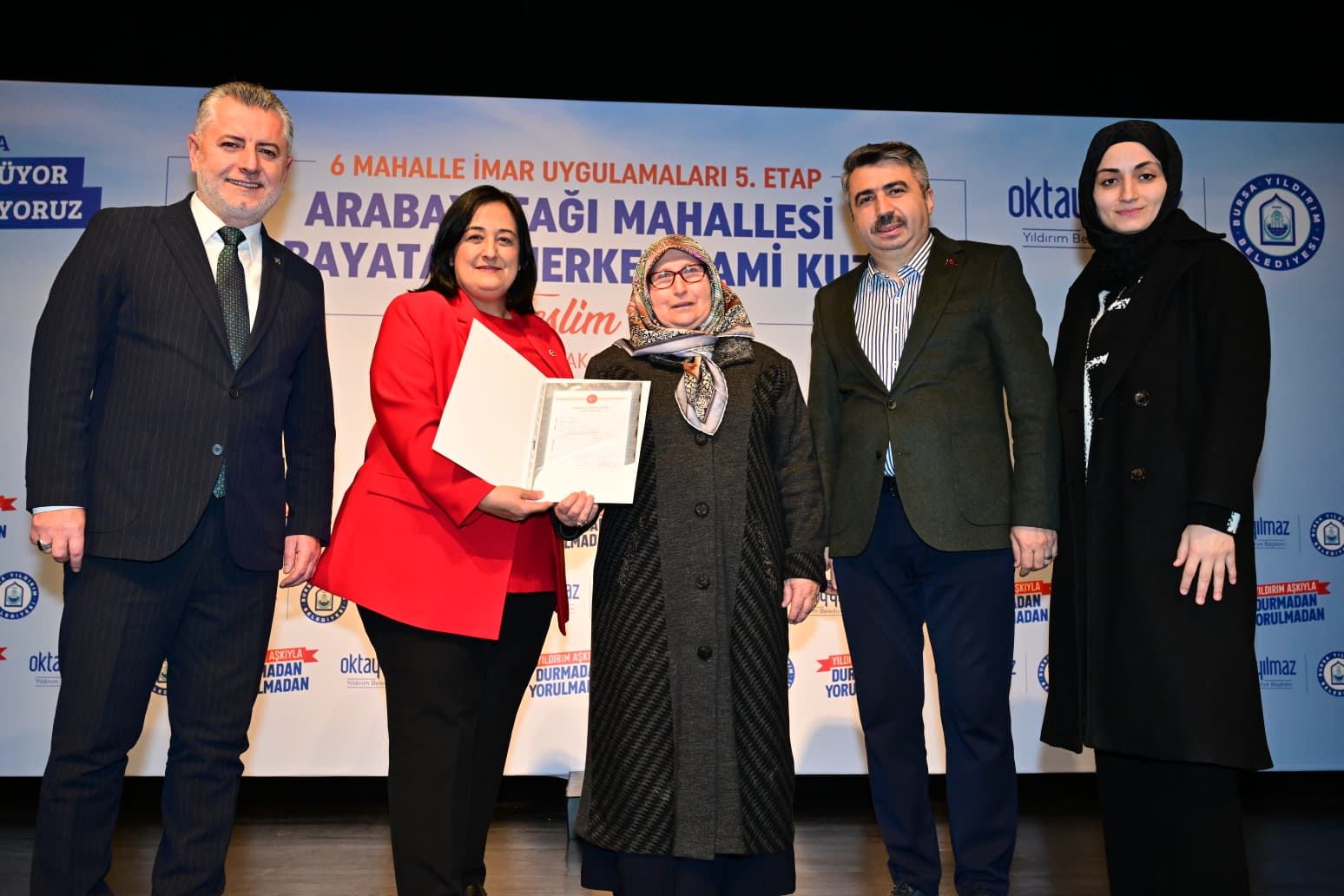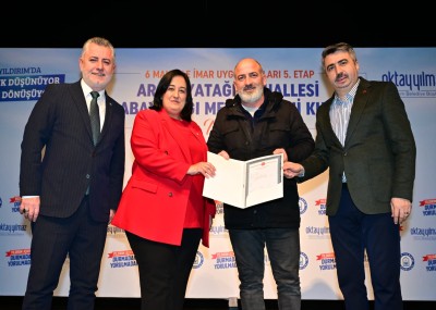 6 mahallede yürütülen imar uygulamalarının sadece binaların dönüşümünü değil şehrin gelişimi için önemli bir adım olduğunu kaydeden Başkan Yılmaz, “Vatandaşlarımıza güvenli modern konutlar yapma imkanı sağlarken, aynı zamanda onlar için yeni yaşam alanları, yeni ulaşım aksları, yeşil alanlar oluşturuyoruz. Bu minvalde 42 bin metrekarelik 5. Etap çalışmaları kapsamında 7 bin 200 metrekaresi park alanı olmak üzere 12 bin metrekare sosyal donatı alanını bedelsiz bir şekilde kamuya kazandırdık. Bizim imar uygulamalarımızda hem hak sahipleri kazanıyor hem şehir kazanıyor. Bugün olduğu gibi yarın da Yıldırım için çalışmaya, üretmeye, Yeni Yıldırım’ı inşa etmeye devam edeceğiz” ifadelerini kullandı. Yıldırım’da yürütülen kentsel dönüşüm çalışmalarının Bursa ve Türkiye için örnek teşkil ettiğini dile getiren AK Parti Bursa Milletvekili Emel Gözükara Durmaz, “Yıldırım Belediyesi, Oktay Yılmaz Başkanımızın öncülüğünde büyük bir dönüşüm hamlesi gerçekleştiriyor. Yıldırım’da yürütülen kentsel dönüşüm çalışmalarına insanlarımız inanıyor güveniyor. Başkanımızı yürüttüğü çalışmalar ve gösterdiği özveriden dolayı kutluyorum” diye konuştu. Protokol konuşmalarının ardından 300 tapu hak sahiplerine takdim edildi.