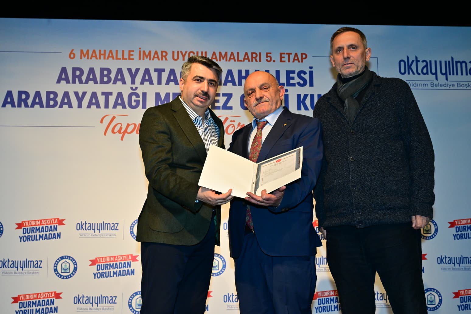Yıldırım Belediyesi, 6 Mahalle İmar Uygulamaları kapsamında Arabayatağı, Çınarönü, Ulus, Yavuzselim, Mevlâna, Hacivat mahallelerinde 7 bin 417 tapu dağıtılırken, 18 bin 950 tapunun da işlemlerini tamamladı.