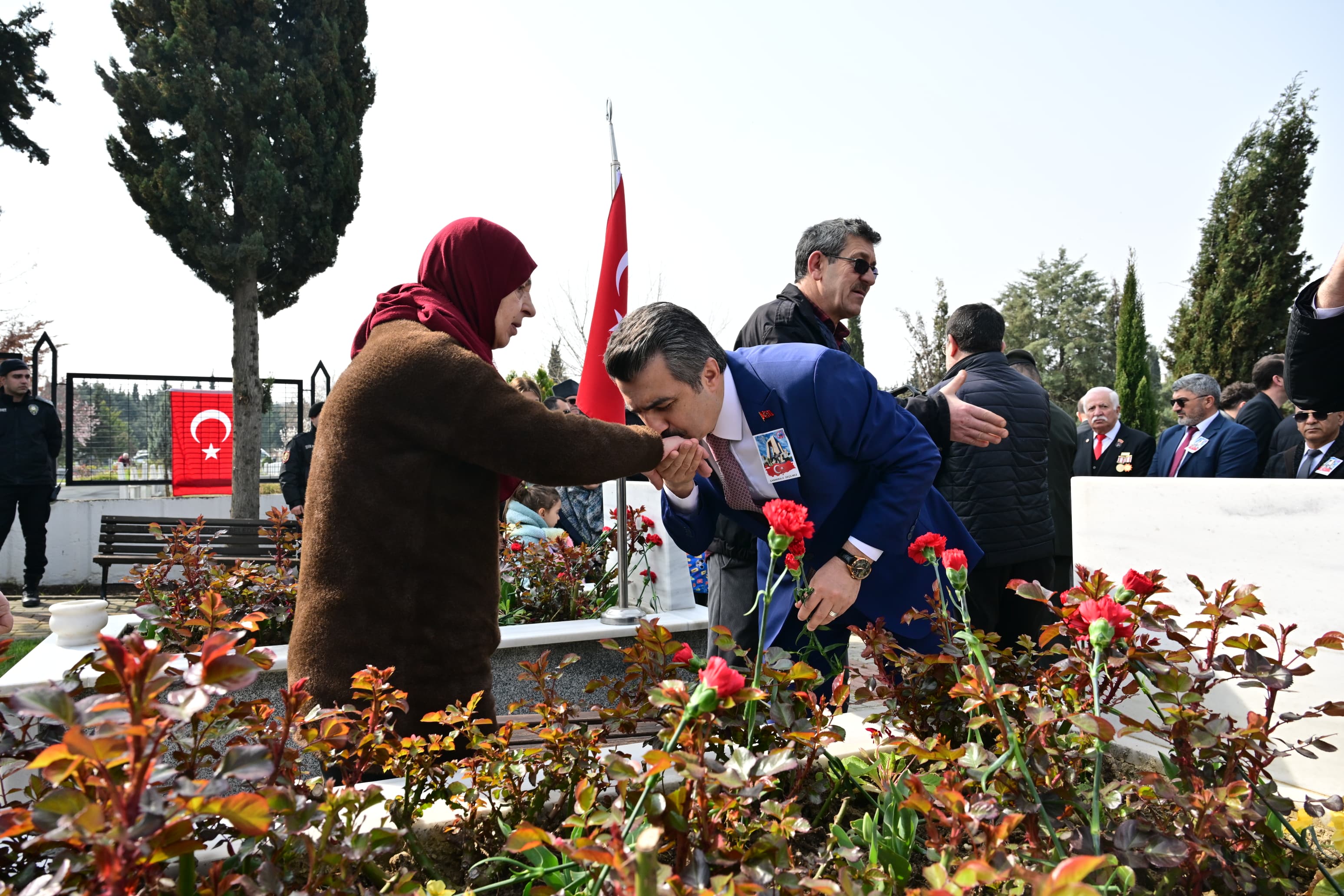 Yıldırım Belediye Başkanı Oktay Yılmaz, 18 Mart Çanakkale Zaferi ve Şehitleri Anma Günü nedeniyle Pınarbaşı ve Hamitler şehitliklerini ziyaret etti. Şehit kabirlerine karanfil bırakarak, dua eden Başkan Yılmaz, şehit aileleriyle de bir araya geldi. Duygusal anların yaşandığı ziyarette şehit annelerinin ellerini öperek, hal ve hatırlarını soran Başkan Yılmaz, “Şehitlerimiz bu vatanın bağımsızlığı ve milletin huzuru için en büyük fedakarlığı yapmıştır. Bu vatanın gerçek sahibi şehitlerimizdir. Aziz şehitlerimizin emanet olarak bıraktıkları aileleri başımızın tacıdır. Her zaman şehit ailelerimizin yanındayız. Kapımız da gönlümüz de sonuna kadar şehit ailelerine açık. Onların her zaman yanında olmak, yalnız olmadıklarını hissettirmek bizim en asli görevimizdir. Devletimiz ve milletimiz, şehit ailelerinin her daim yanındadır” ifadelerini kullandı.