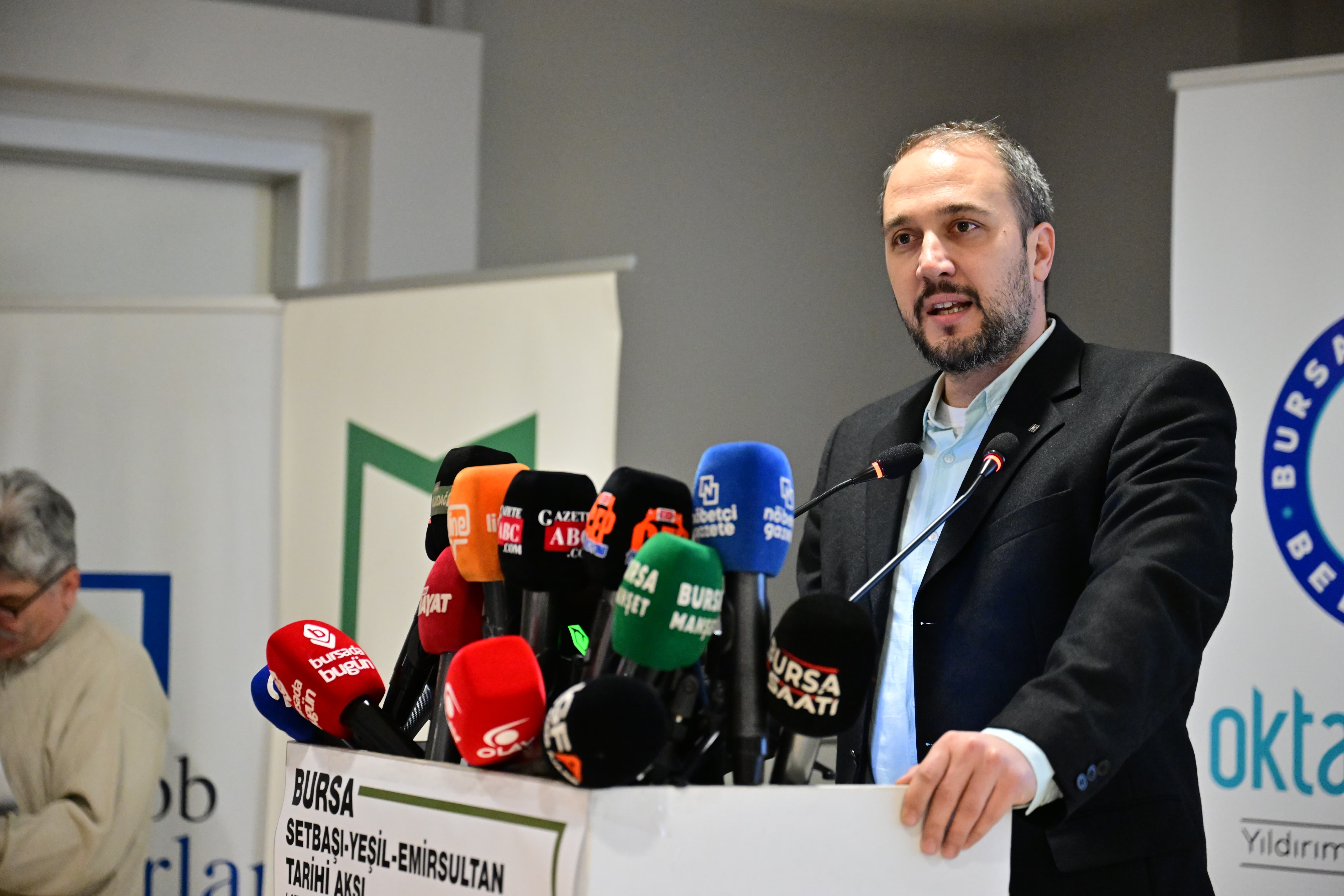 ‘Bursa Setbaşı-Yeşil-Emirsultan Tarihi Aksı Kentsel Tasarım Fikir Yarışması Kolokyum, Sergi ve Ödül Töreni’nin’ açılış konuşmasını yapan Yıldırım Belediye Başkanı Oktay Yılmaz, Bursa’nın fethinin 700’üncü yıl dönümünde tarihi bir projeyi hayata geçirdikleri için mutlu ve gururlu olduklarını belirtti. Bursa deyince akla Yeşil ve Emir Sultan geldiğini vurgulayan Başkan Yılmaz; “Bu bölge tarihi ve kültürel açıdan çok zengin, değerli. İşte biz bu değerli bölgeyi ihya etmek için yola çıktık. Bu tarihi aksta bugüne kadar restorasyon çalışmaları, kentsel dönüşüm projeleri, trafik düzenlemeleri gibi önemli çalışmalar gerçekleştirildi. Ancak biz şehre bütüncül bir pencereden bakarak bu kapsamlı çalışmayı başlattık. Bölgeyi bir bütün olarak ele alıyoruz” ifadelerini kullandı.