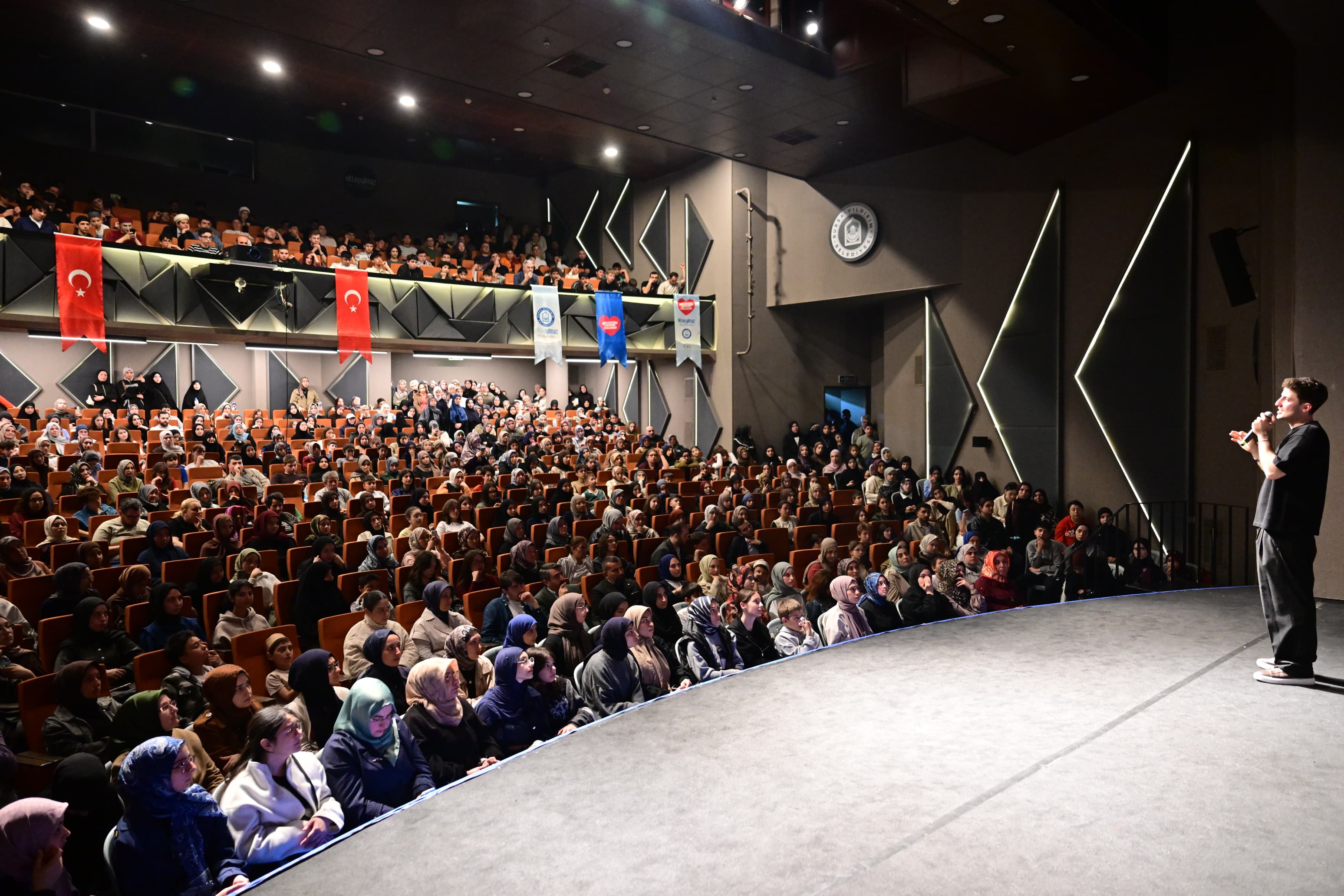 Yıldırım Belediyesi, başarılı komedi grubu Müminifest’i Bursalılarla buluşturdu. Kültür, Sanat ve Sosyal İşler Müdürlüğü tarafından Barış Manço Kültür Merkezi’nde düzenlenen programa vatandaşlar yoğun ilgi gösterdi. Grup üyeleri Seyfettin Demircioğlu, Furkan Uyan ve Seyyid Soylu salonu dolduran izleyicilere kahkaha dolu bir akşam yaşattı.