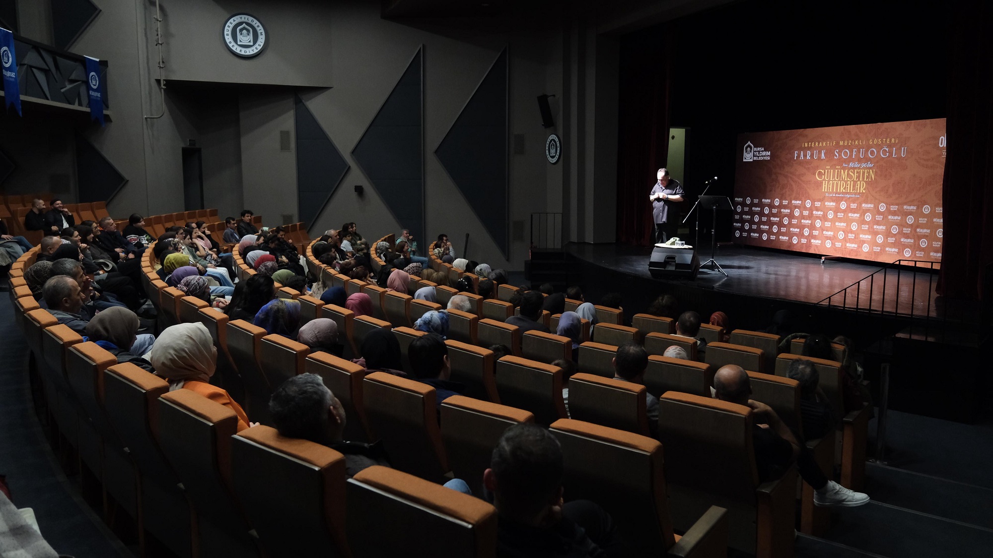 Yıldırım Belediyesi, kültür sanat programlarıyla ilçenin sosyal yaşamına renk katmaya devam ediyor. Konserlerden tiyatro gösterimlerine, söyleşilerden sinema gecelerine kadar pek çok etkinliği Yıldırımlılarla buluşturan Yıldırım Belediyesi, son olarak 80’li ve 90’lı yılların sıcak atmosferini sahneye taşıyan ‘Gülümseten Hatıralar’ adlı interaktif müzikli gösteriye ev sahipliği yaptı. İzleyicileri 80’li ve 90’lı yılların samimi atmosferine götüren, nostaljiyi müzik ve mizahla buluşturan ‘Gülümseten Hatıralar’ interaktif sahne gösterine Yıldırımlılar yoğun ilgi gösterdi. Faruk Sofuoğlu’nun başrolünde olduğu gösteri; dönemin unutulmaz şarkılarını, sokak kültürünü, çocuk oyunlarını, aile ilişkilerini ve mahalle yaşamını eğlenceli bir üslupla Yıldırımlılarla buluşturdu. İzleyiciler, Faruk Sofuoğlu’nun performans ve anlatıları, Evrim Kırcı’nın seslendirdiği nostaljik şarkılar ile eğlence dolu unutulmaz bir akşam yaşadı.