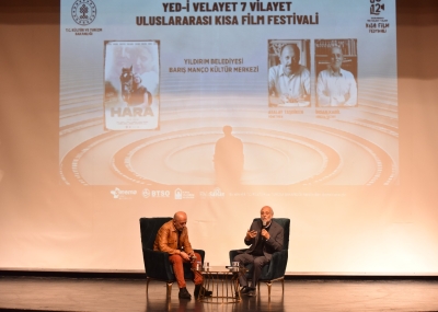 Kültür ve Turizm Bakanlığı tarafından bu yıl, ‘Türk’ün Ataları’ başlığı ile Türk tarihinin önemli şahsiyetlerine adanan ‘12. Uluslararası Yed-i Velayet 7 Vilayet Kısa Film Festivali’ devam ediyor. Seçkin filmleri Bursalılarla buluşturan festival kapsamında dün, ‘Hara’ filminin gösterimi gerçekleştirildi. Barış Manço Kültür Merkezi’nde düzenlenen film gösteriminin ardından ise Yönetmen Atalay Taşdiken ve Sinema Yazarı İhsan Kabil söyleşi programında sinemaseverlerle buluştu.