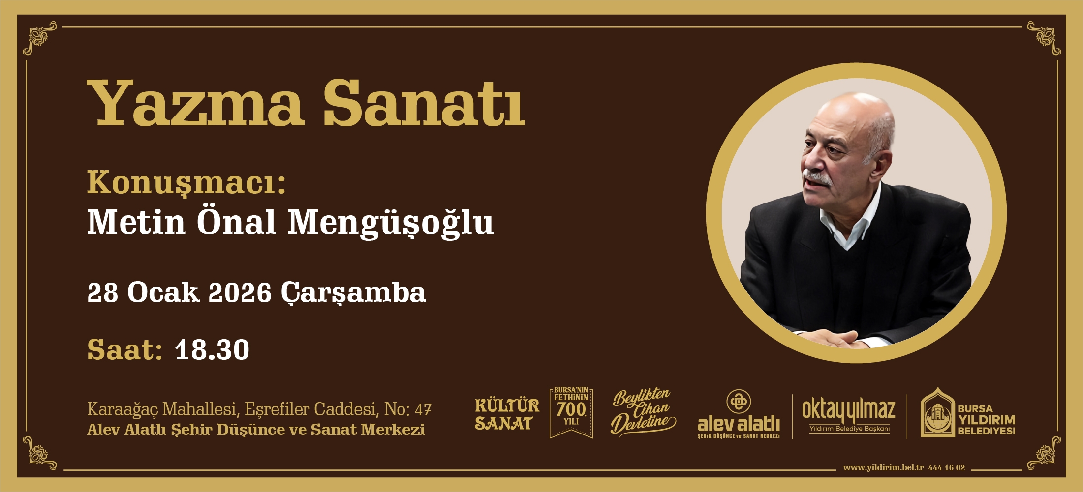Yıldırım Belediyesi, ‘Beylikten Cihan Devleti’ne’ temasıyla başlattığı 2025-2026 Kültür Sanat Sezonu’nda, Bursa’nın fethini; tarihi, kültürel ve felsefi açıdan ele almaya devam ...