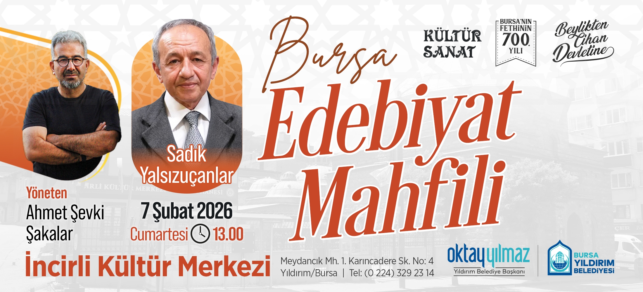 Yıldırım Belediyesi, ‘Beylikten Cihan Devleti’ne’ temasıyla başlattığı 2025-2026 Kültür Sanat Sezonu’nda, Bursa’nın fethini; tarihi, kültürel ve felsefi açıdan ele almaya devam ...